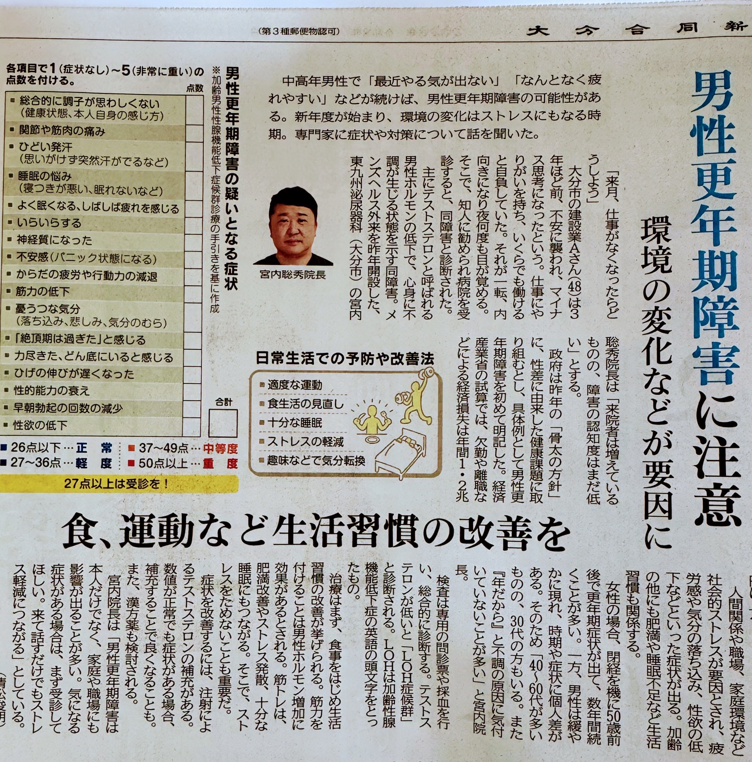 このたび、当院の宮内聡秀院長が大分合同新聞に掲載されました。